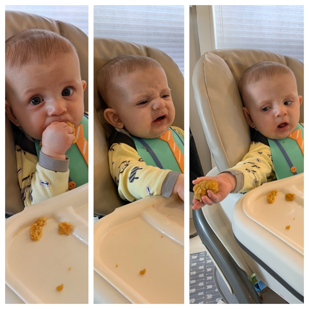 When Cade hit six months, I tentatively delved into the world of introducing solid foods. I attended a workshop (back when we could be around other people) and learned all about the different ways to start this “exciting” new chapter (I put “exciting” in quotation marks because I think a more appropriate word would be “challenging”… but that’s not the word they used in the advertisement).